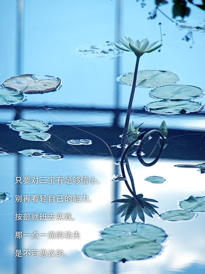 我说:“少了三宝的信愿,轻视自己的能力,忘却了师父的用心良苦,真的很难看到成果。只要对三宝有足够信心,别再看轻自己的能力,按部就班去实践,那一点一滴的功夫是不可思议的。也要常忆起学佛的道路就是在起伏的过程里更能看清一切,成果的出现也是由此累积而来的。」