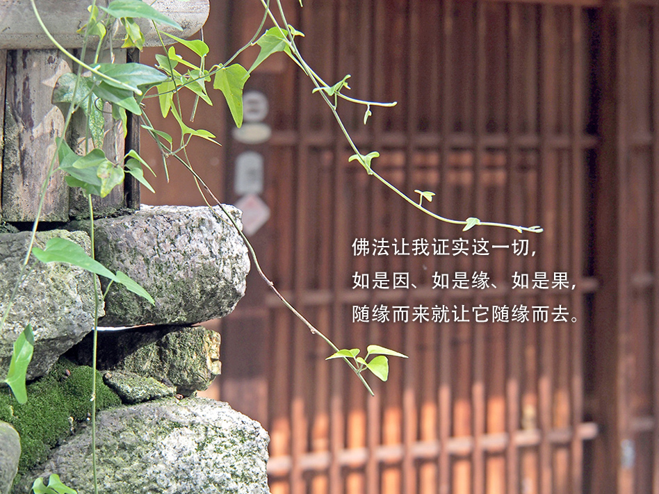“因缘成熟,要能承受业报现前,那是人生的转捩点,这非迷信与消极,一切都是有因有缘。无法确知何因何缘或明知有因有缘,切勿埋怨抗拒、消极自弃,别再迷惑于无因果无因缘的见解,心安在此,智慧就在这边出现。当因缘未成熟,果报未现前,此刻是改变的最好机会,别那么天真,以为社会那么记得你,不如说自己过于执着。”