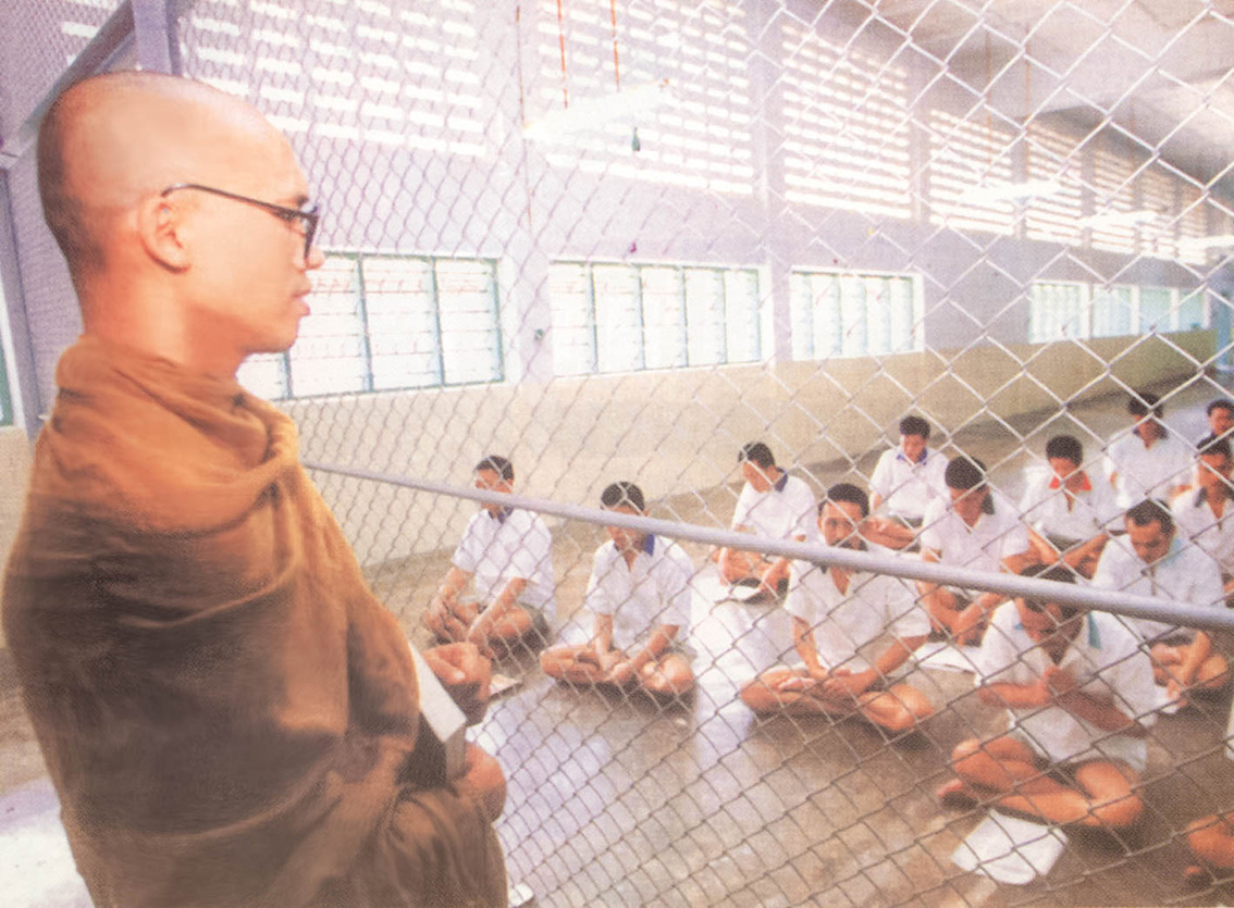 1988年开始走入木寇山槟城的监狱,与囚犯谈话、讲经。四年后,在一群死囚的要求下,他来到了加影。每周一早上九时,他将准时出现在加影监狱。在几十年的监狱弘法,他的慈悲不知软化了多少身陷囹圄,手脚戴着重重镣铐的硬汉子,进而皈依佛教。