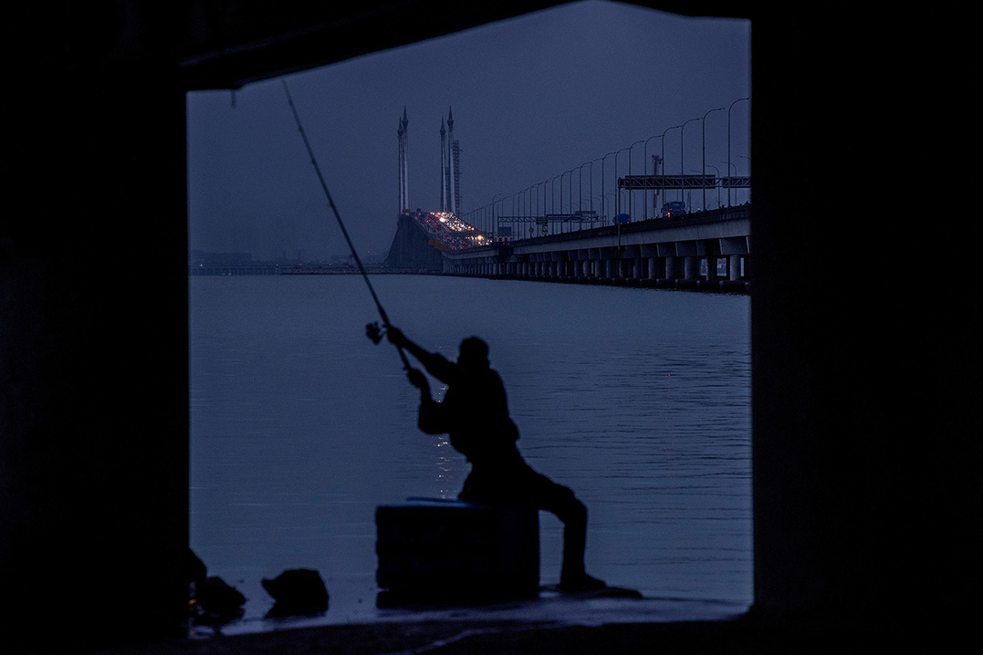 即使没有日出光彩渲染出一幅早安图,这个城市还是被各种恼人噪音扰攘苏醒,不但抢尽人间所有窸窣唧哝的天籁之音,还驱走暌违已久的槟岛朝阳。数年前我也曾匍匐在槟威大桥底,当时海无声风无语,只有光影在表演默剧,“光”率先以魔术师登场,肆意在天幕舞动橙红缎带,当人目眩神迷之际,瞬间从闪着异彩的琉璃海里托出一颗明珠,而万物的影子就像水涟漪里晕开的墨液,“光”即刻化身书法家蘸点墨影,一横两竖成巍峨大桥,一折一捺变搁浅渔舟,凑成一幅宁静致远的写意国画。