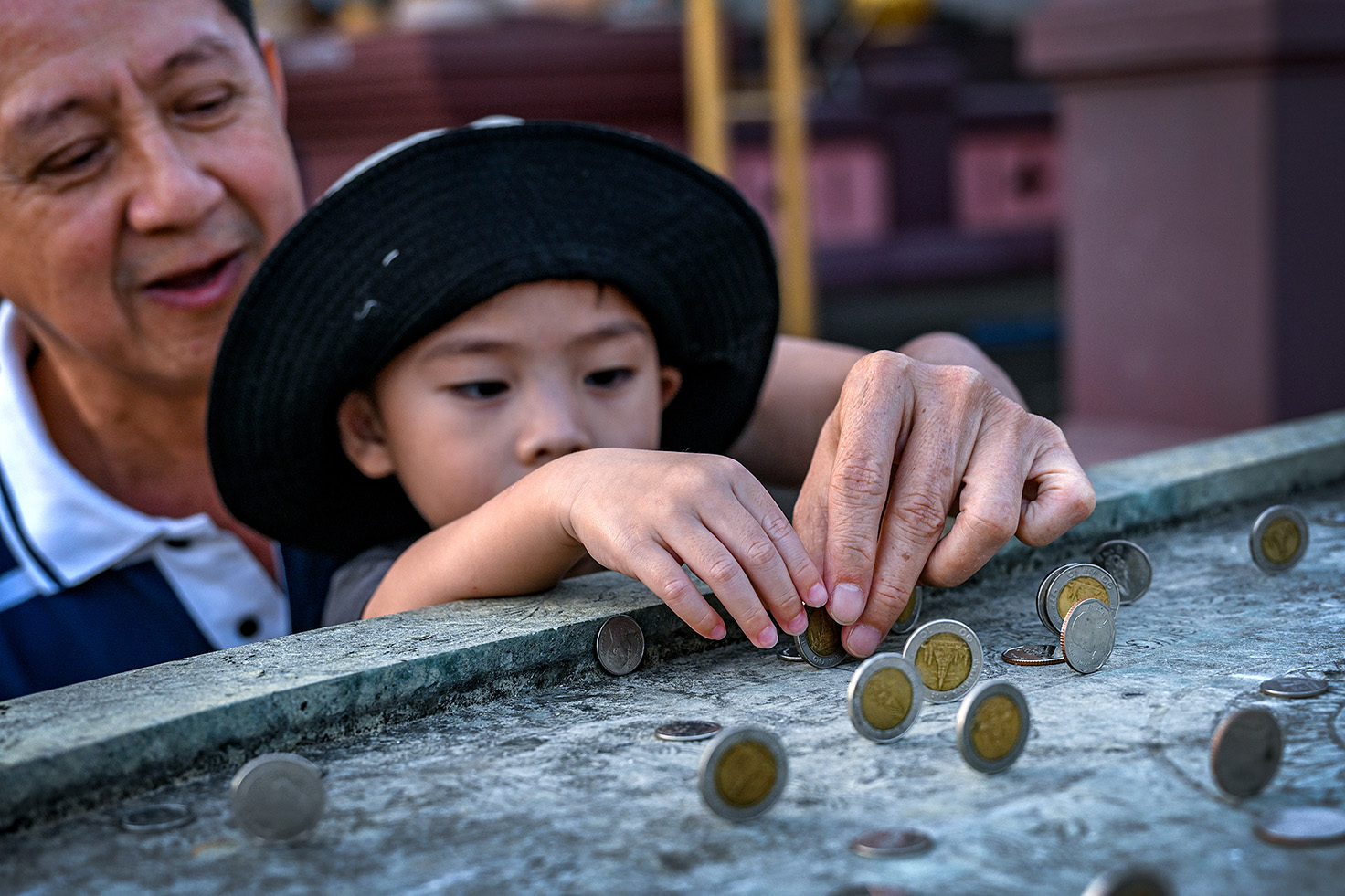 午后搭上飞艇甩脱那乌烟瘴气之窟,一上岸蓦见偌大金佛寺,入内参拜时偶遇神座下“立币”许愿的父子,两人见我多番祈愿失败,一边掏出硬币,一边叽里咕噜联手向我演示,我会意缓缓松开指尖,终于成功以一枚硬币换个希望,但求对岸那些以一己私欲求取不义之财的人早日立地成佛。
