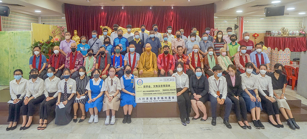 2023年于八打灵观音亭卧佛殿举行的奖学金和捐款颁发仪式。