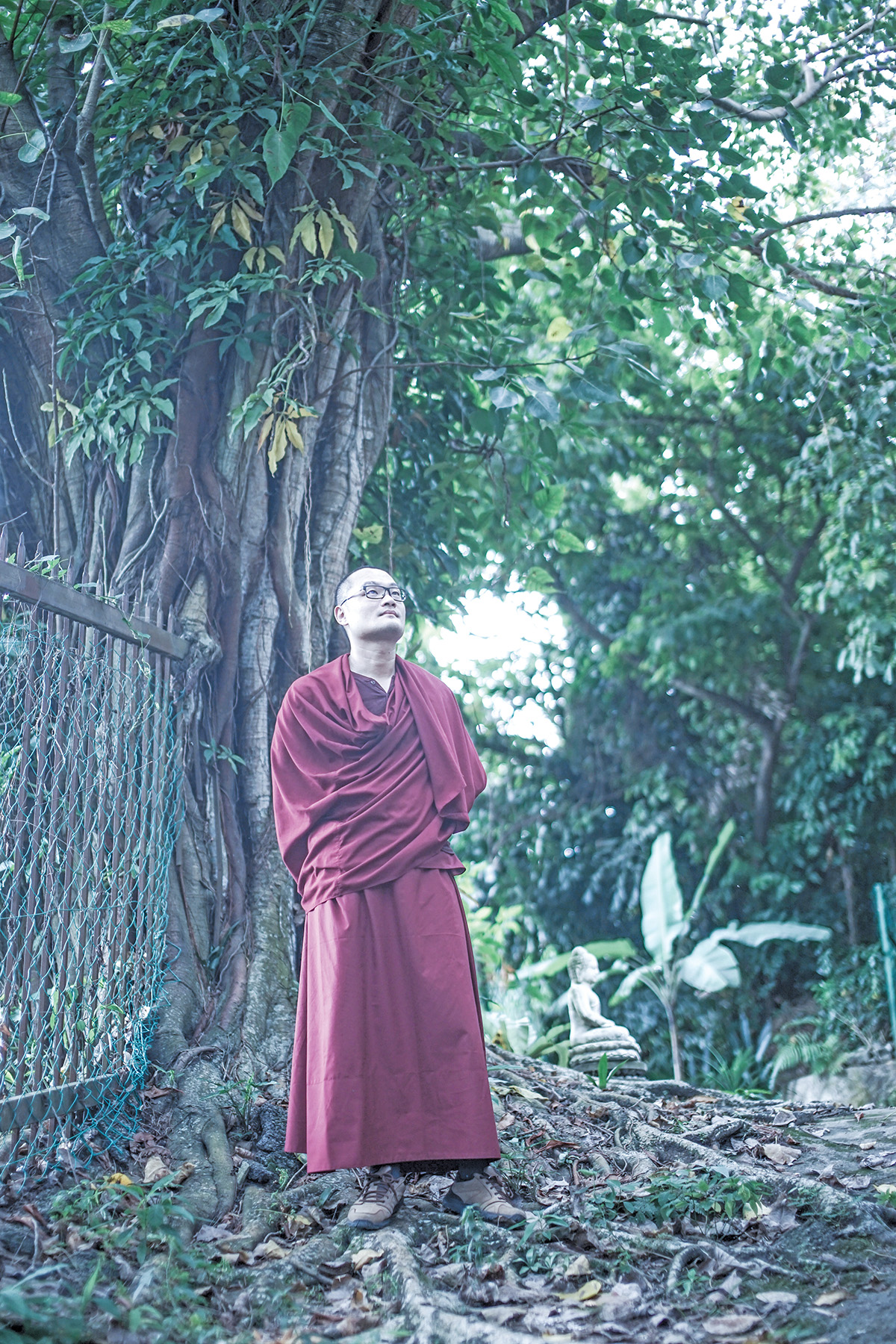 他开始认为自己有问题,于是试着从相关书籍中寻求改变自己的方法,也极积去上了一些课程或夏令营。因缘巧合下,他接触了佛教,遇见了佛法。十五岁那年,在自愿和很自然的状态下, 他选择在高雄的一间寺院剃度出家。本以为进了寺院可以过些清净和不必与人打交道的生活,万万没想到情况与预想颇有出入——他常常得面对和接待许多信徒。这令他不知所措,常觉自身能量被耗尽,身心俱疲。