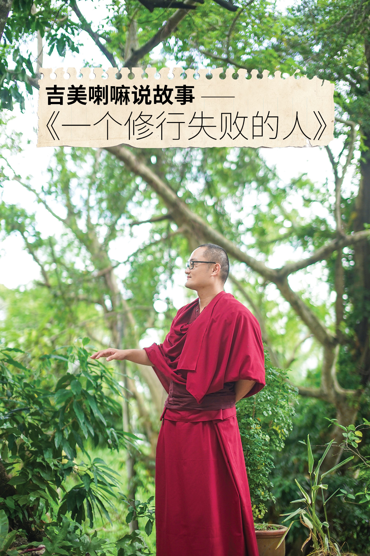 吉美喇嘛认为现在的人都不爱听大道理,也面对实践教条和道理的困难。因此,他更喜欢分享一些自己在修行道路上曾经跌撞或遭受失败的过程,自然去发掘和散发自己本具的善和特质。