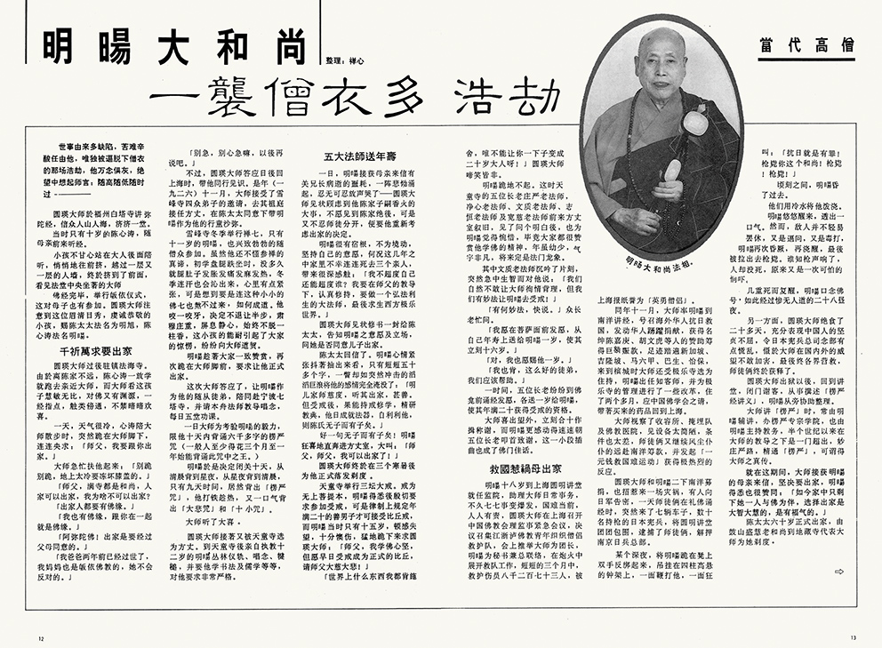 这次大师答应了,让明旸作为他的随从徒弟,陪同赴宁波七塔寺,并请本舟法师教导唱念, 每日五堂功课。