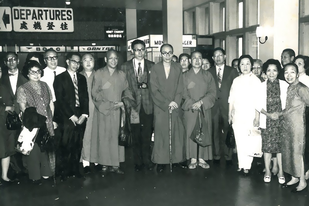 ·1965年,觉光长老率众迎接明珠活佛访港。