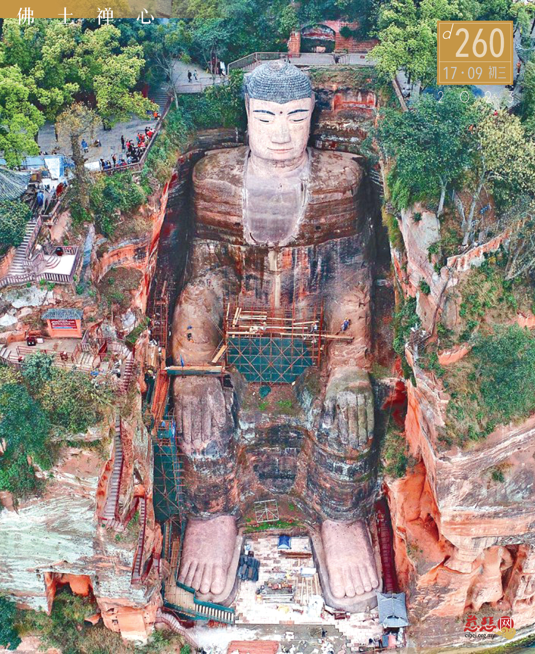公元1世纪,在四川省峨眉山景色秀丽的山巅上,落成了中国第一座佛教寺院。随着四周其它寺庙的建立,该地成为佛教的主要圣地之一,而身高71米的乐山大佛被联合国教科文组织列为世界遗产。始凿于唐代开元初年(公元713年),历时90年才得以完成。佛像依山临江开凿而成,是世界现存最大的一尊摩崖石像,有“山是一尊佛,佛是一座山”的称誉。周围植被以物种繁多、种类丰富而闻名天下,有些树木树龄已逾千年。