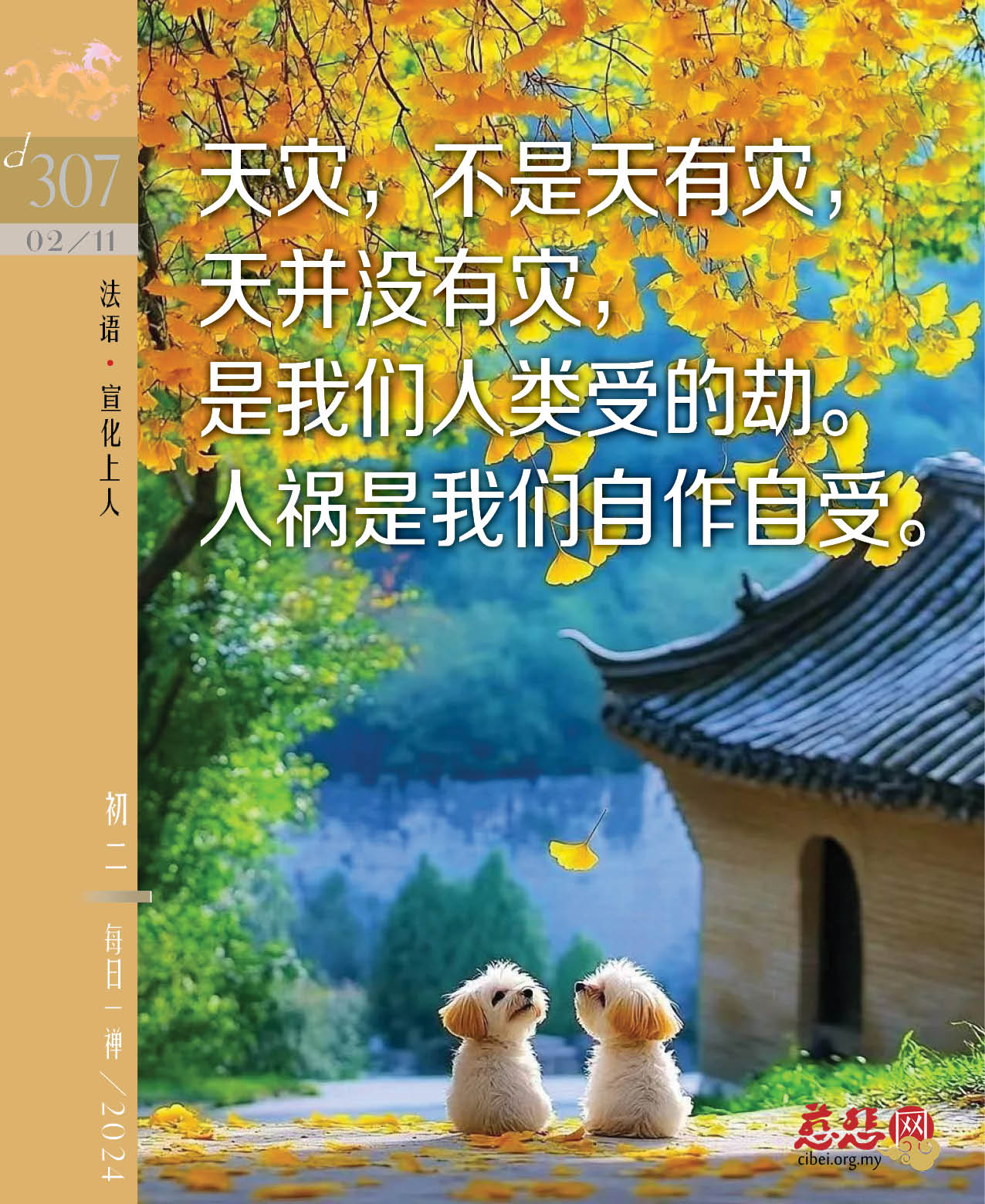 天上有八万四千个星斗,人有八万四千个毛孔。我们人与每个世界皆相通。世界的毁坏是因为人有无明。天地间的空气和每个人的空气都是相通,空气和空气分不开。每个人的空气,有他空气的源路。所有人存一善念,就补助天地间正气的不足。每个人发一次脾气,生一念烦恼,就增加宇宙间的戾气。如尽用贪瞋痴处理事情,天地间的灾难就多了。一人如此,多人如此。 恶人聚集的地方,灾难气就多点,所以这世界哪个地方好,哪个地方坏,和我们每个人分不开的。——宣化上人