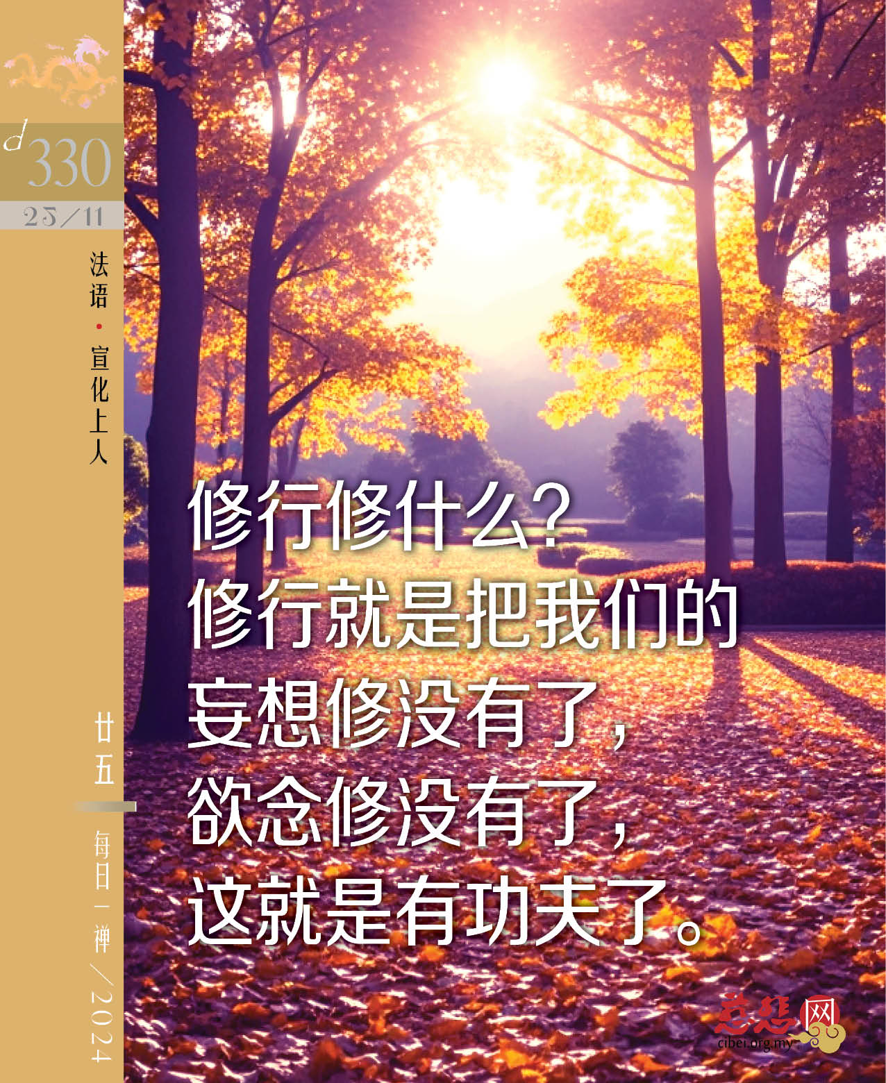谁对自己不慈悲,或不讲道理,都是自己的善知识。能“逆来顺受”,对横逆能处之泰然,才见出你忍辱的功夫,不要因别人一句话就动了。你要修得“不动”,能忍人所不能忍,这才是真功夫,否则还须从头练起。——宣化上人