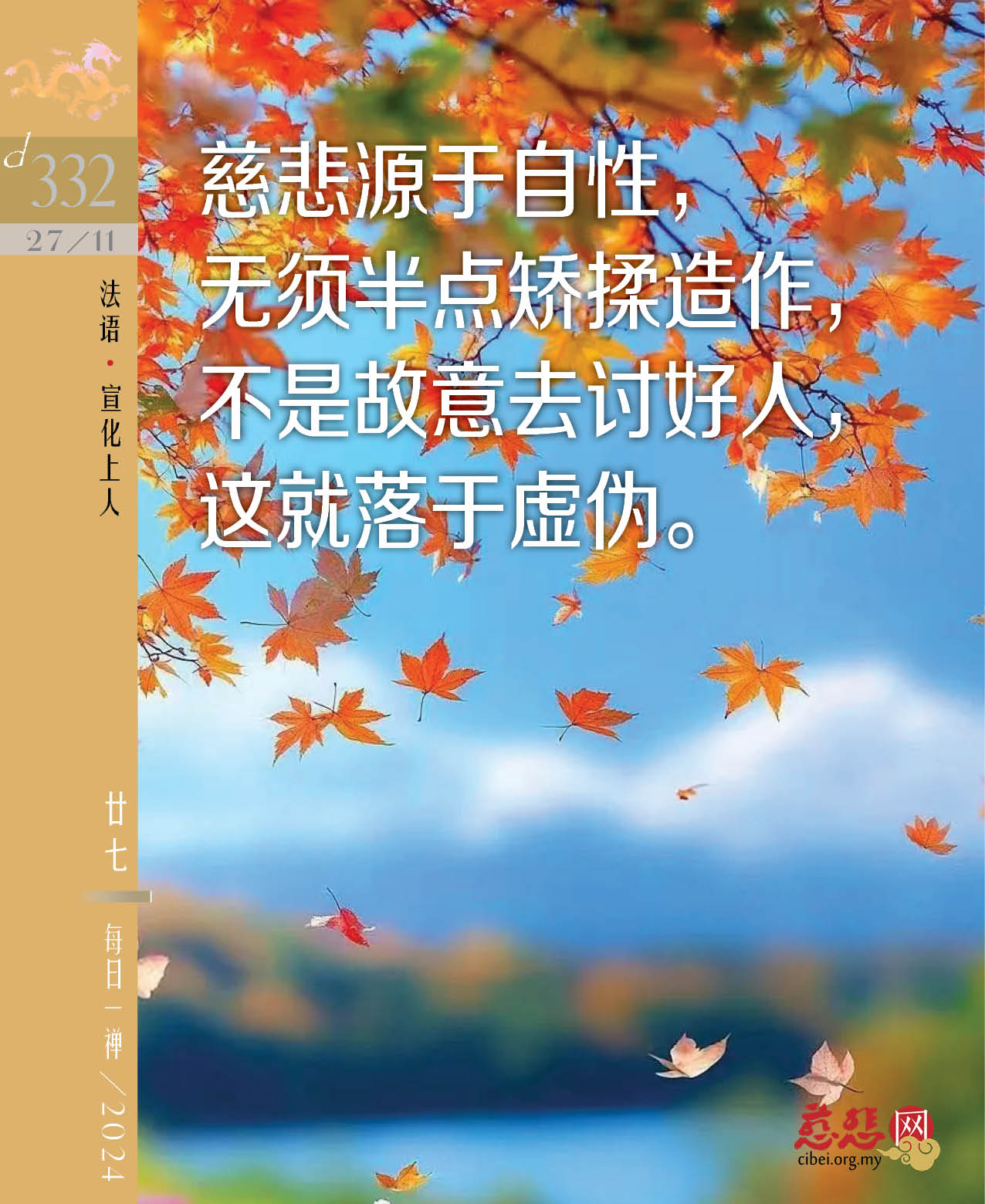 人一天一天长成,慢慢会懂得其理,心里自然会生出慈悲,不用故意采取什么行动。故意慈悲,流于谄媚;故意不慈悲,又变成冷淡。