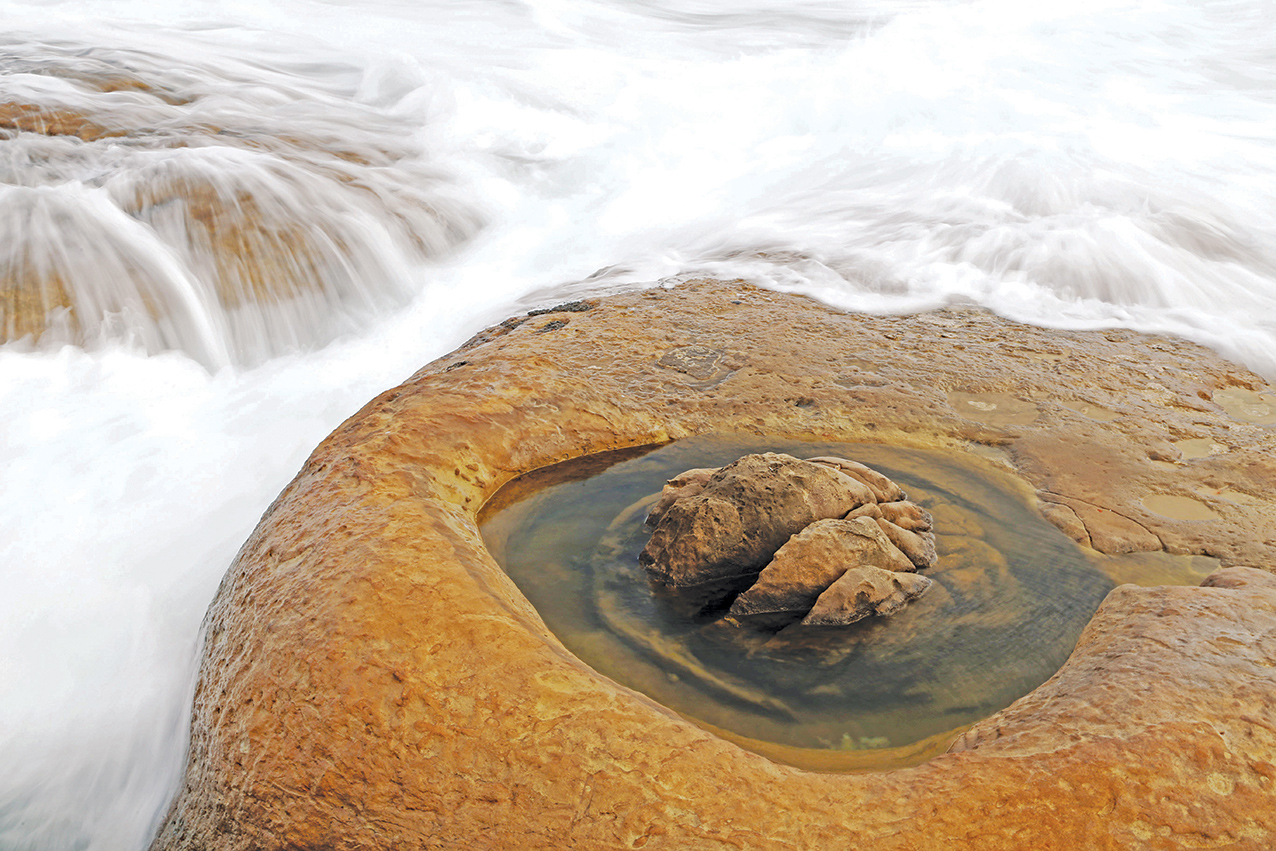 在台湾野柳的海边看到浪花击石,阳刚的岩石如如不动,阴柔的水绵绵不绝,让我想到以前背诵的一首诗:“功盖三分国,名成八阵图,江流石不转,遗恨失吞吴。”。这是一首纪念三国时代的传奇人物诸葛孔明的诗词,称赞他的功绩以及表达他的遗憾。