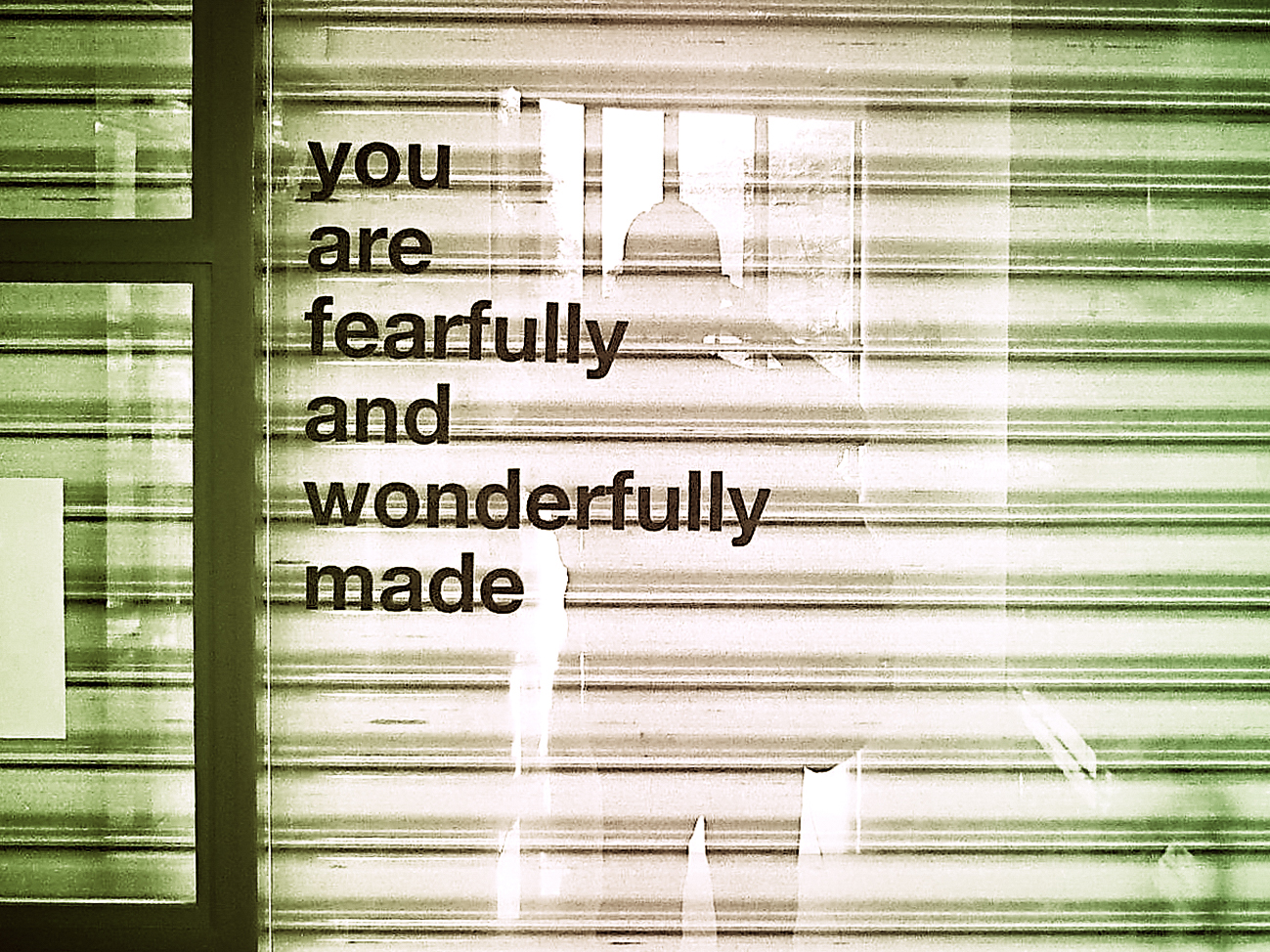 每天早上,我总会川越某商业广场,在广场内乘搭电梯至一楼,然后步行至轻快铁站搭轻快铁上班。而每当电梯开门走几步路,迎面而来是一间商店,其店门贴着以下的英文句子:You are fearfully and wonderful made,这些句子像一道道曙光射进我的视线,进而激荡我的思绪。