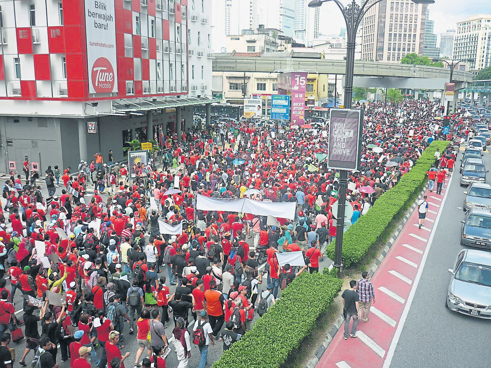 走在“红红绵绵”的长长人笼中,激亢的口号正飞扬,让自己忘却了行走三至四小时,以及酷阳炙热下的疲累。