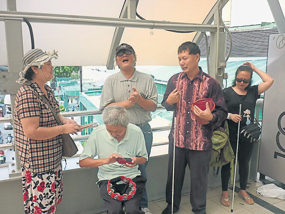 那个炎热午后,途经轻快铁站,传来阵阵的优扬歌声,原来是一群视障朋友正在自弹自唱,唱的皆是一首首经典的英文老歌。每个人的脸上都充满喜悦,随音乐摆动肢体,非常投入在歌声里。
