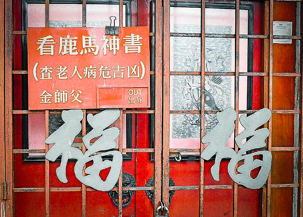 每回上班途中,总经过这间应具有多年历史的小神庙。它与一般民间拜拜的神庙没什么两样,吸引我的是,它门前挂着的这块小铁板的题字:查老人病危吉凶。