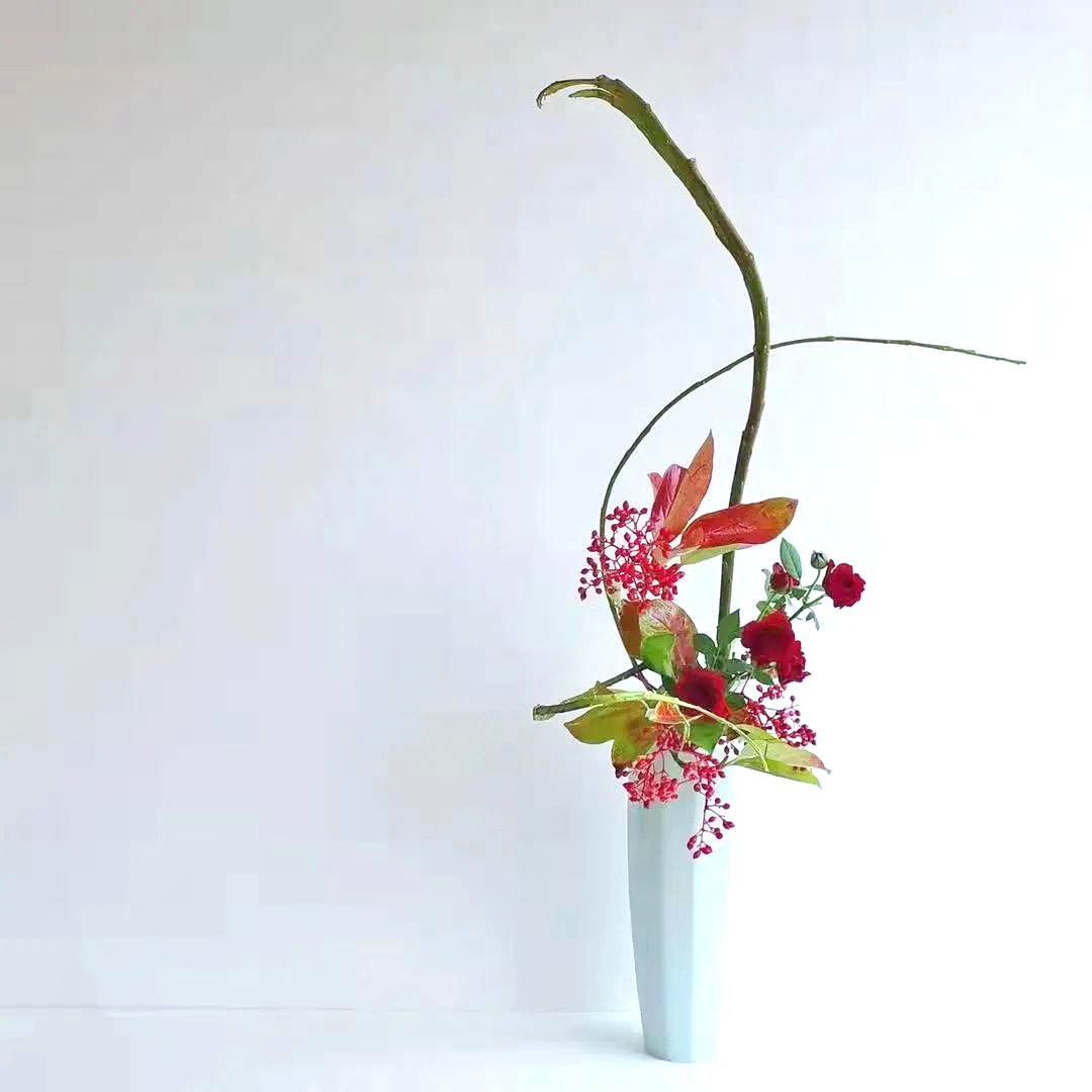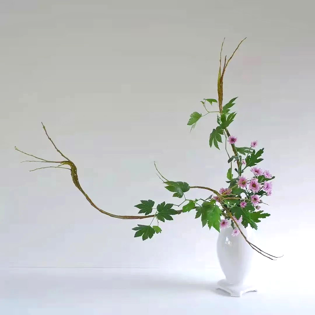 ◆枝条选择向那个方向伸展,取决于你想传达出什么样的意境,结合具体的花叶,做出最和谐的搭配,调整。考虑花器的高度、质感,周围环境等等。