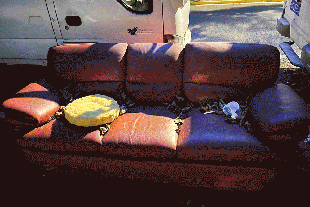 马路上还藏着另一重要的城市信息,遛狗的观观在一个月之内遇到过9个床垫。沙发、床垫多了,意味着租客的流动。离开,或者换房子,很多人因为疫情在家待很久,意识到家的重要性,决定换更好的。
