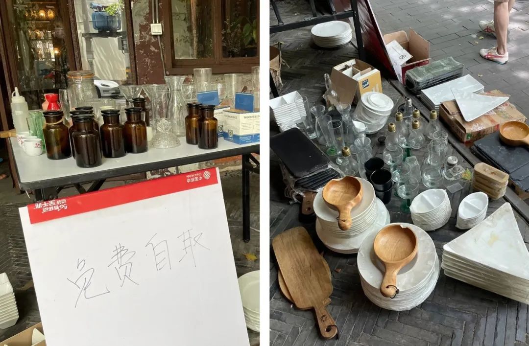 ▲ 巨鹿路的西餐厅结束营业,把物品放到路边供人免费自取,图源:又喜商店