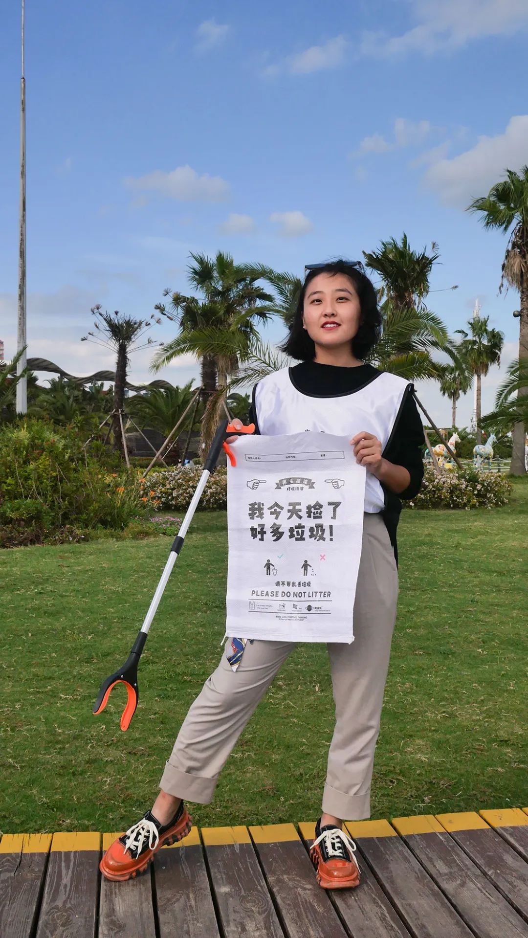 观观在接受采访的9月底,参加了一个金山海滩的捡海洋垃圾的活动,她兴奋地分享着结束捡垃圾后,她带着大家一起做冥想、放松:“真的很开心。”
