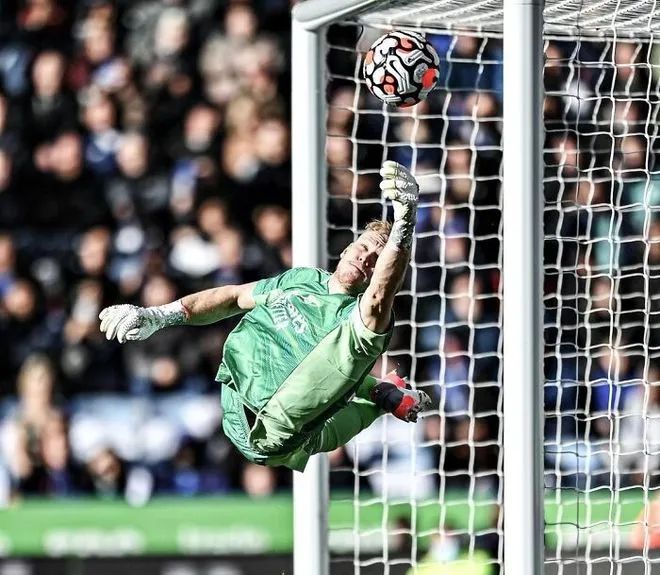▲ 守门员拼命飞身拦球的瞬间,从身体都已经变形的动作来看,守门员已经很努力了。