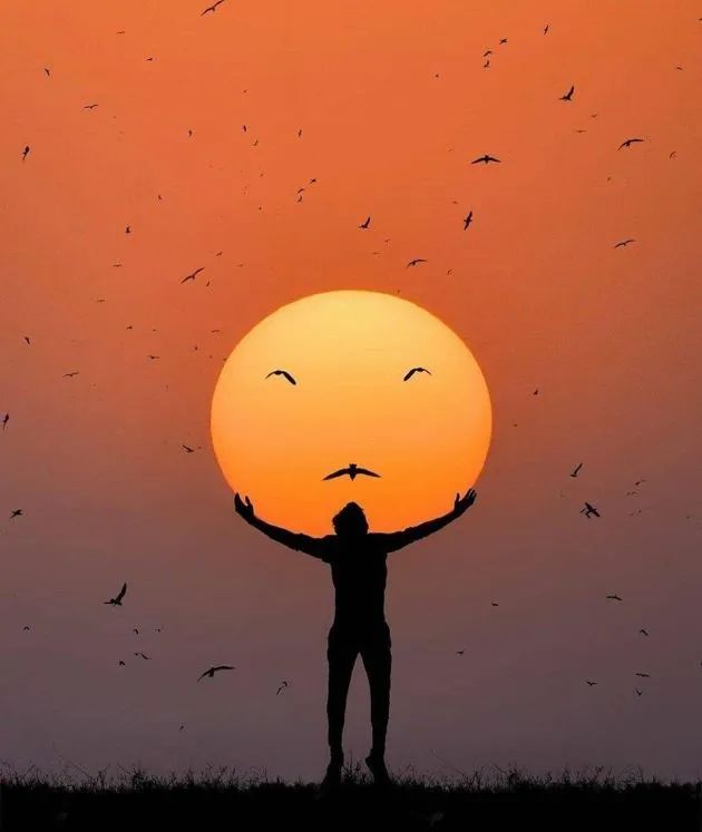 ▲ 三只海鸥刚好与太阳形成了一个表情,看上去仿佛太阳微了一样。