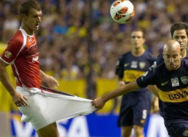 ▲ 足球上的奇葩一幕,踢球就踢球,怎么还抢别人裤子的。