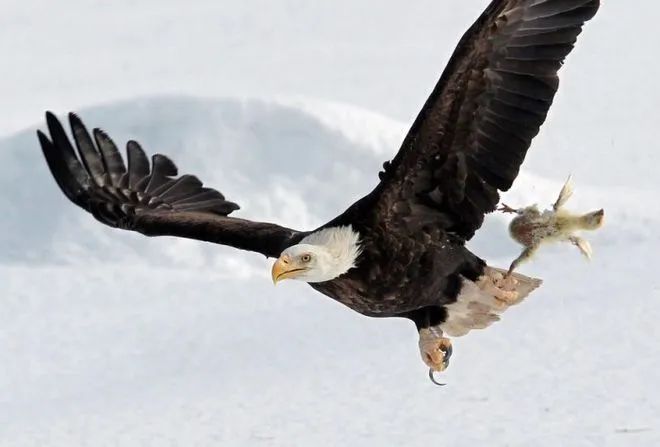 ▲ 真正的老鹰捉小鸡,一只刚孵化出来没多久的小鸡被带着在天上飞。