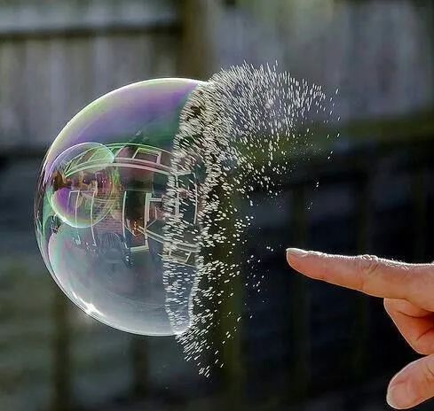 ▲ 泡泡被戳破的瞬间,爆裂成无数的小水珠。