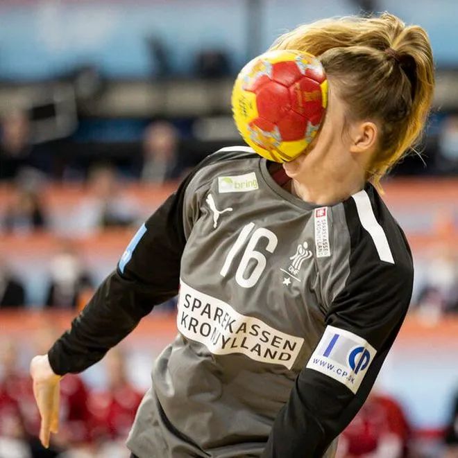 ▲ 运动员结结实实吃了一个“球饼”的瞬间,脸部都被球撞得变形了。