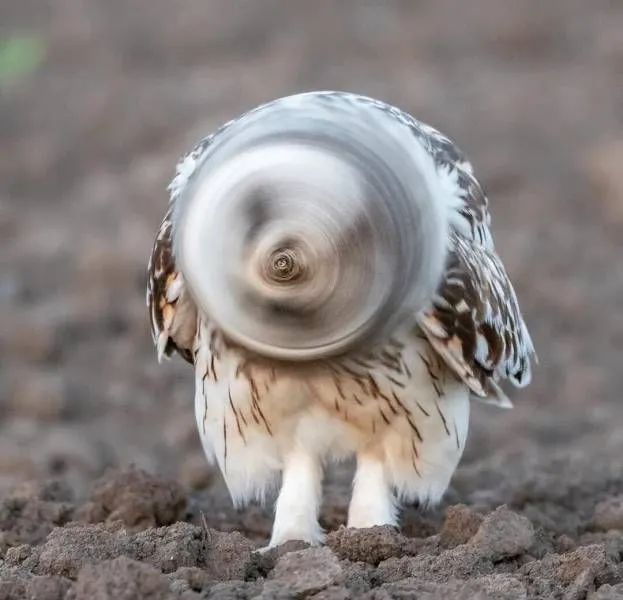 ▲ 猫头鹰的摇头瞬间,在延时摄影下拍出了钻头的效果。