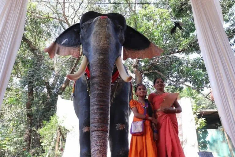 印度的很多宗教仪式都需要大象参与,尤其在喀拉拉邦的寺庙节日中,大象扮演着重要的角色,它们通常被拴上链子、装上鞍子、戴上装饰,同时忍受仪式的嘈杂。
