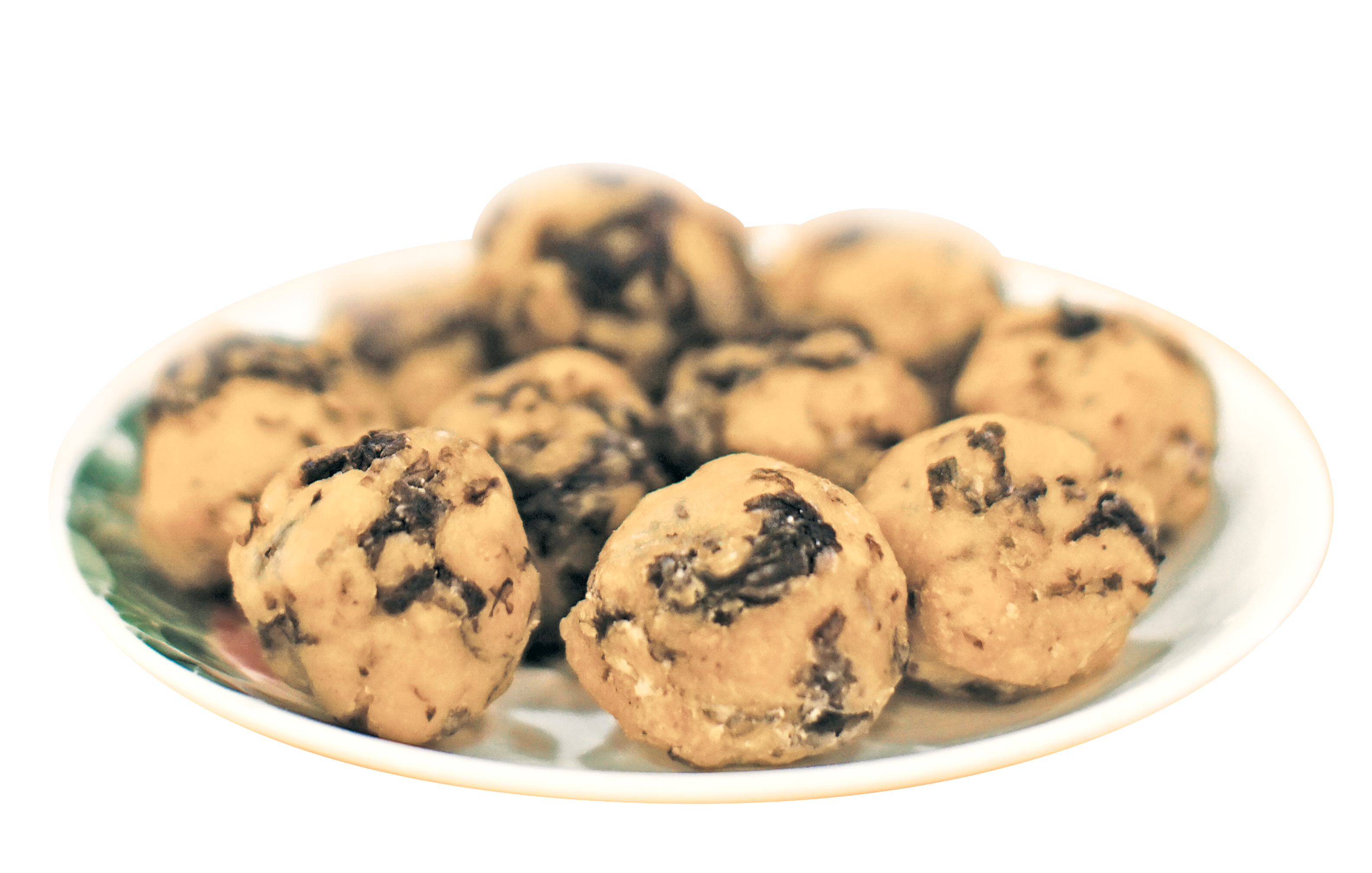 兴化豆腐放入白布袋挤去水份后,加入调味料和芫荽碎、紫菜拌匀,取出每份18克做成丸子。每粒腐丸沾上生粉,用油炸香即成。