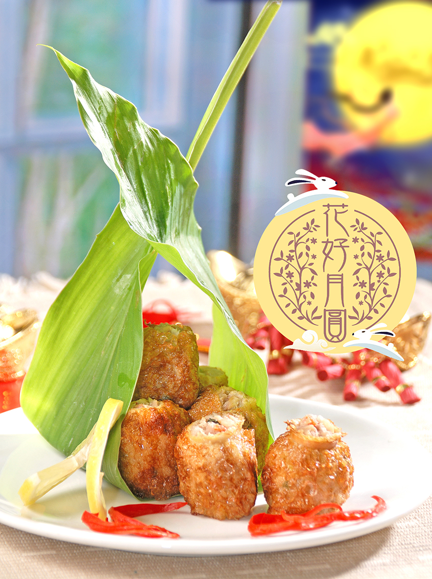 5. Steam for 8 minutes. Leave aside to cool.Deep fry until golden brown. Cut the string. Serve.