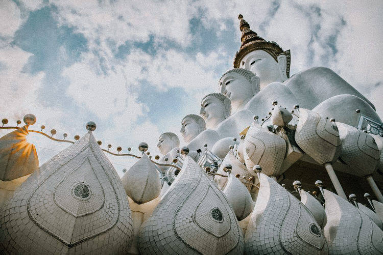 白色的五座佛像是帕颂桥寺最吸引人的地方,最低的佛像高45米,最高的则有72米,五座佛像下还有一座佛堂。