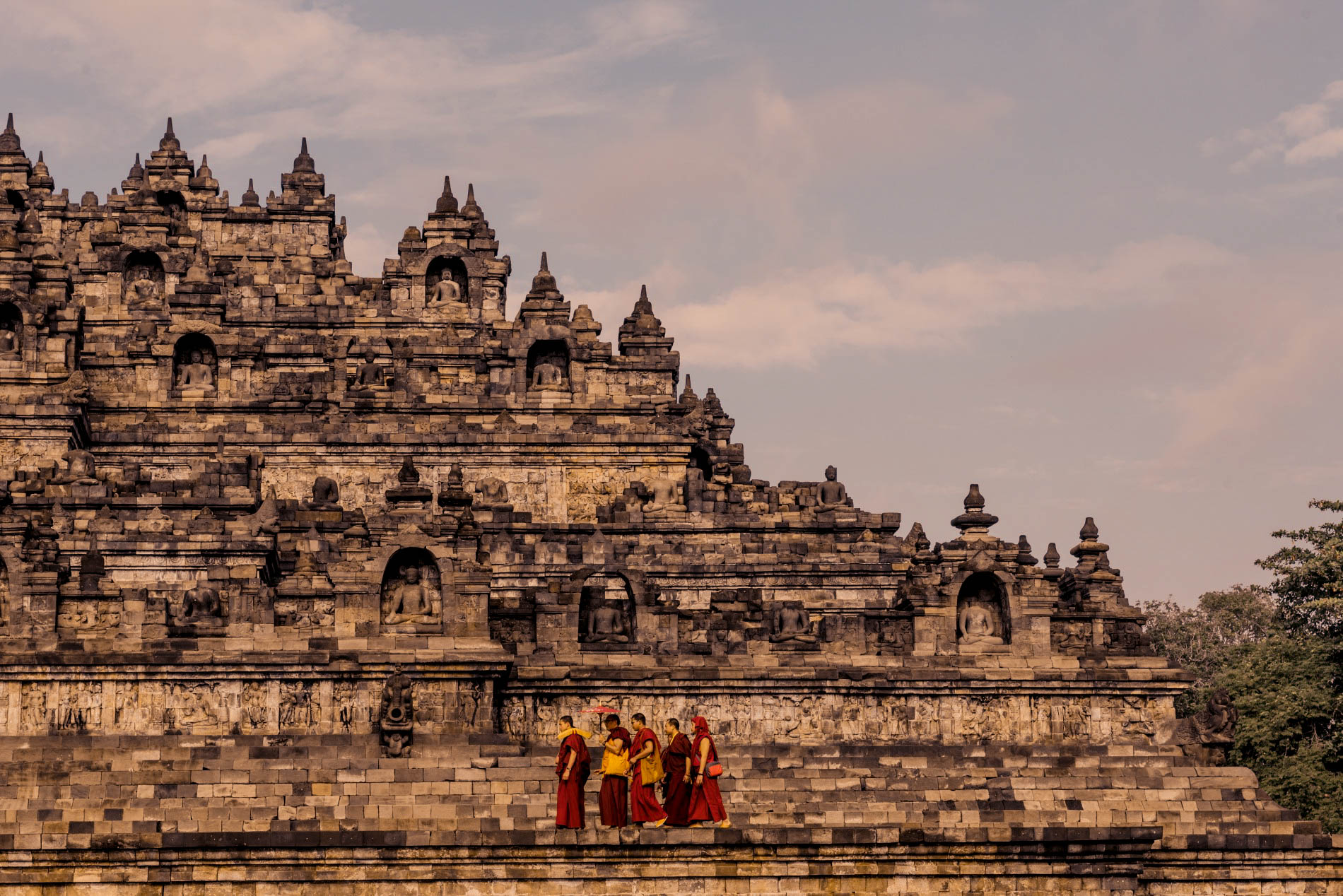 婆罗浮屠是作为一整座大佛塔建造的,从上往下看它就像佛教金刚乘中的一座曼荼罗,同时代表着佛教的大千世界和心灵深处。