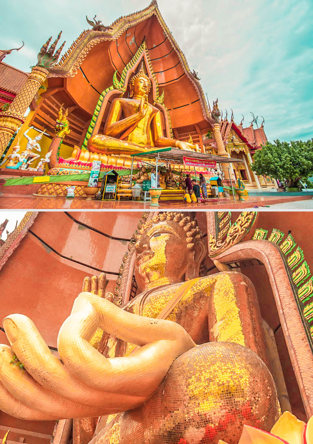 虎窟寺最显眼的就是一尊高达18米的金色大佛,大佛背靠着锥形金光罩,让大佛的光辉更显栩栩如生。