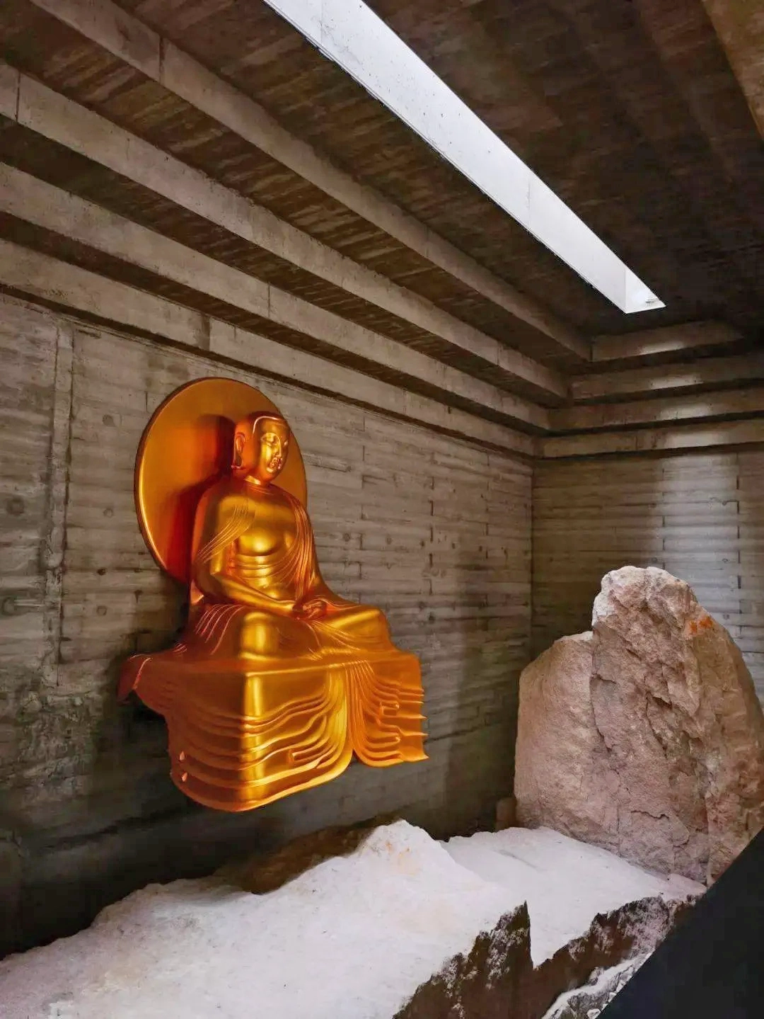 拾级而下,走到建筑群底部,就到达了最核心的空间——阿兰若禅堂。