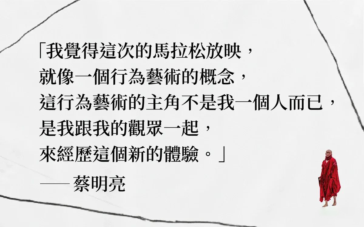 「这有点像修练的艺术行为,我觉得会是一个创举、一个新的观影体验。这条慢路,我希望有你同行。」——蔡明亮