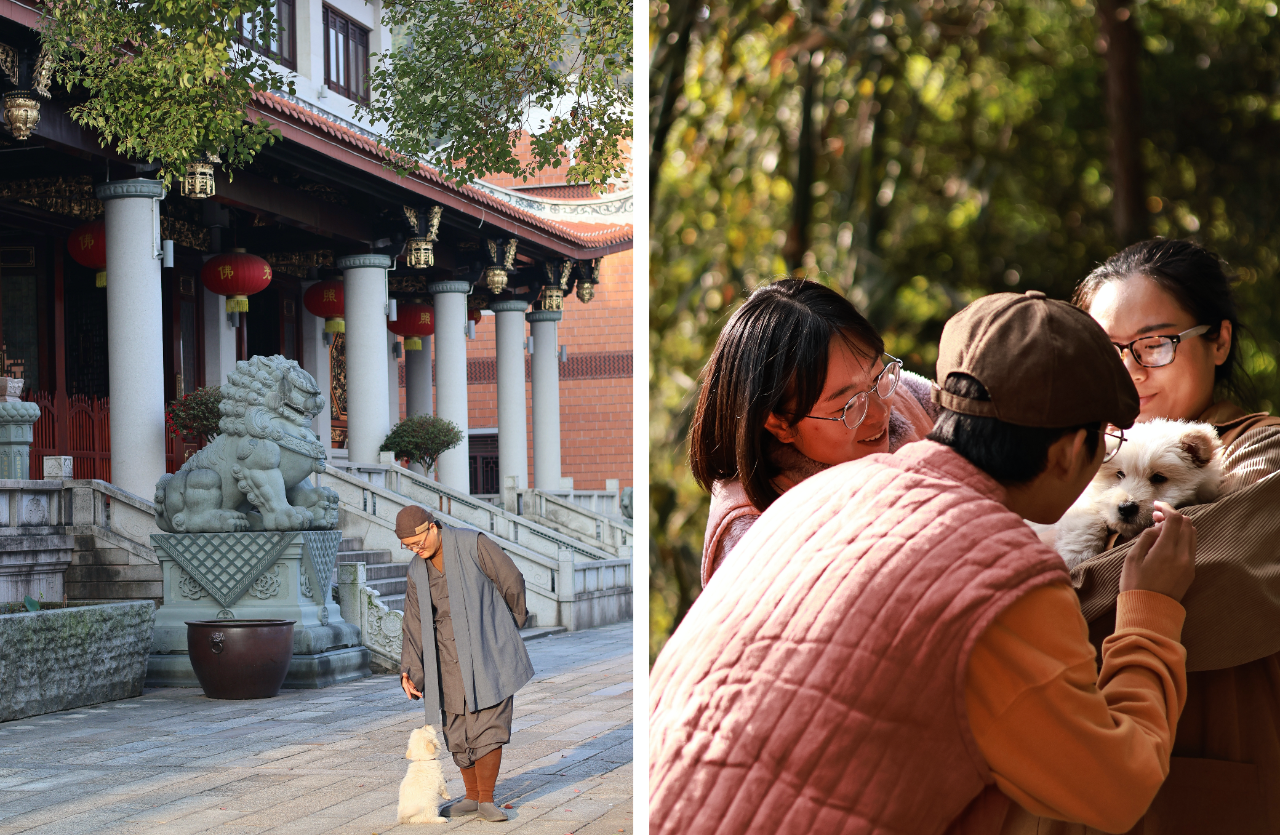 寺庙规模不大,两位师父和一群女性义工组成了一个紧密的家庭,就连团宠猫咪都有自己带名字的佛牌。