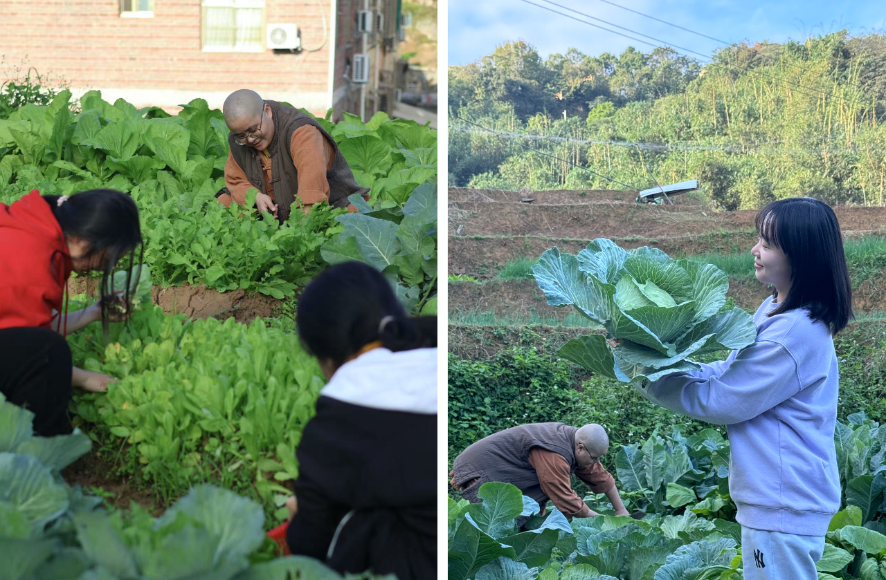 在寺院小住一段时间,有人觉得身体变好了,早睡早起,按点吃饭,每段时间只专注于一件事,生活不再被分割得七零八落。义工醒醒说从师父那里学到了“丰裕哲学”:一人一天伙食费6元、电费2.5元,大家后山种的辣椒、包菜、芦笋等蔬菜一年四季源源不断,不用很多钱,生活就可以过得很踏实,还能收获“关系、时间、精神的多重富足”。