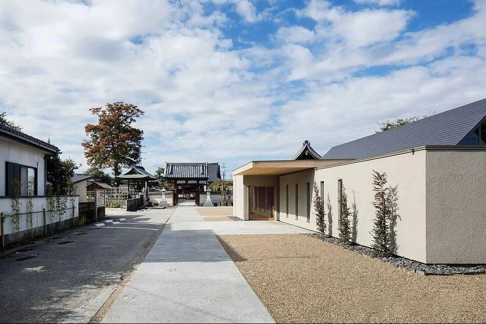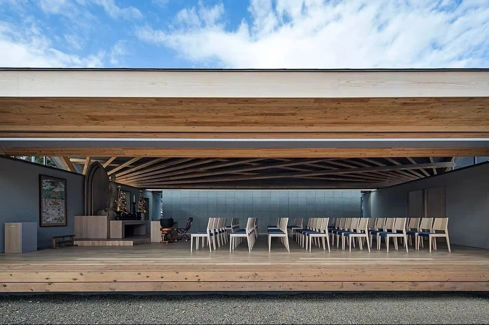 建筑师让新旧建筑得以自然延伸相接,屋顶体量与位置设计使得从参道行走时,可以自然地看见寺院的山门、本堂、不动堂等景观,访客能将大门、新大厅与旧厅视为一体,形成连贯的参拜体验。
