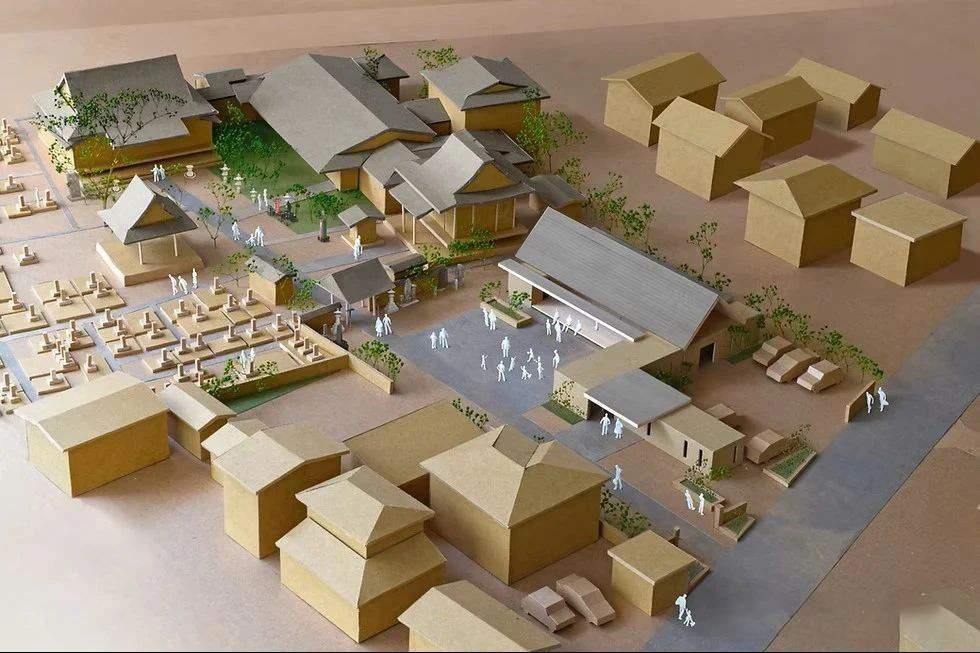 在新的厅堂中,建筑团队重新诠释了寺庙及其背景之间的关系。团队仔细考量了新旧建筑及当中的组织配置、屋顶尺寸等,建筑以重新规划的参道和中庭为核心,街道一侧设停车区,中庭与大厅形成一致连通的空间。