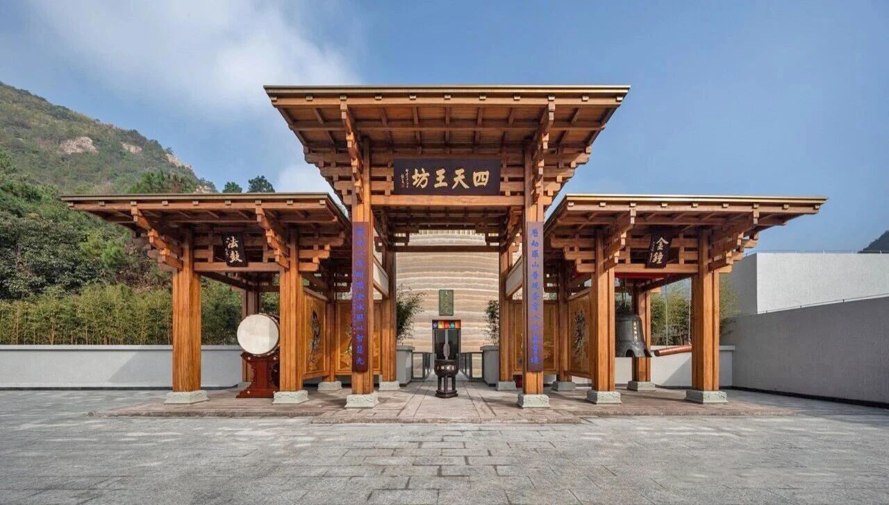 普明禅寺连入口都设计得充满戏剧性。你不会直接走进去,而是先来到南侧的开放式山门。