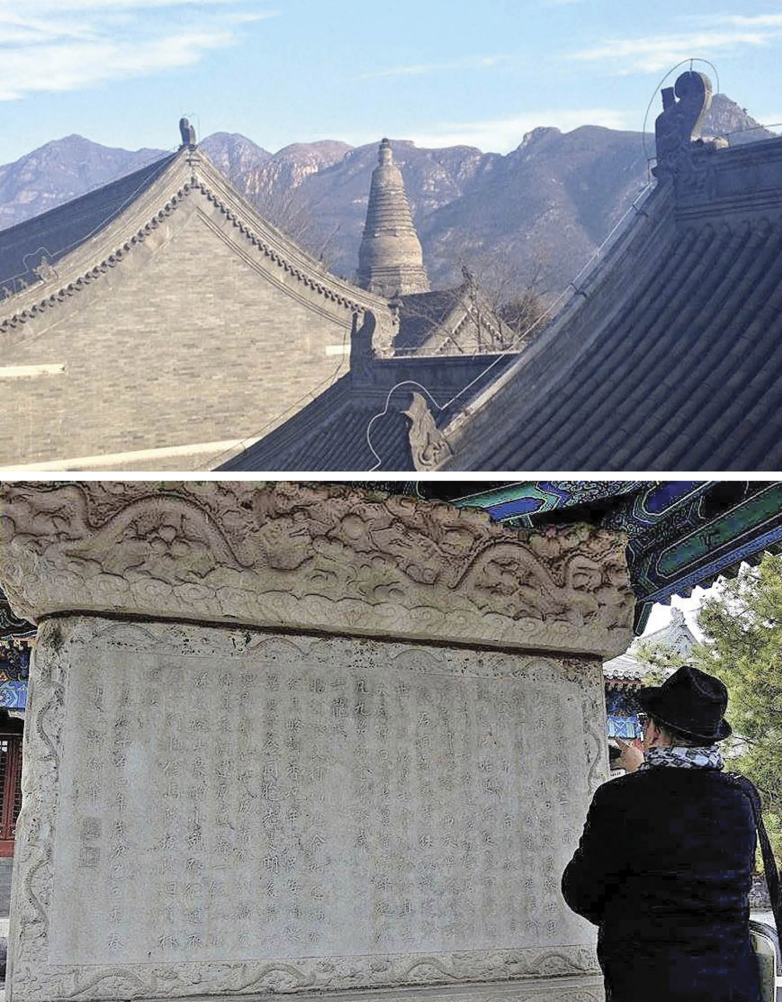 上:檐影斜照,苍山落日,魏塔矗立天地,人世有感。下:云居寺也是个欣赏石刻碑文的好所在,名家不少。