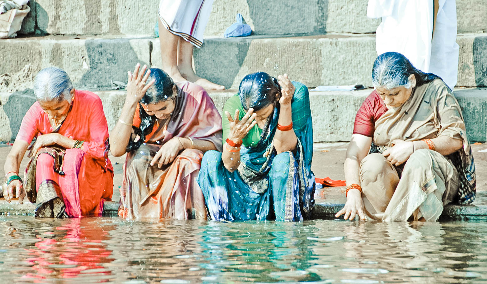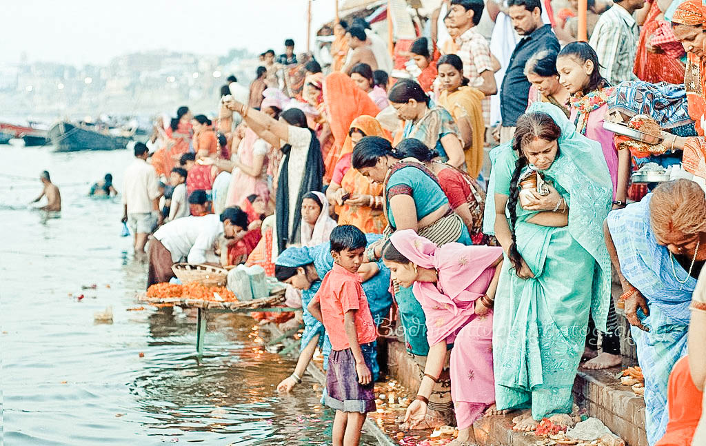 上游河岸,接触圣河之水,是快乐欣喜及对明天充满期望的善信。
