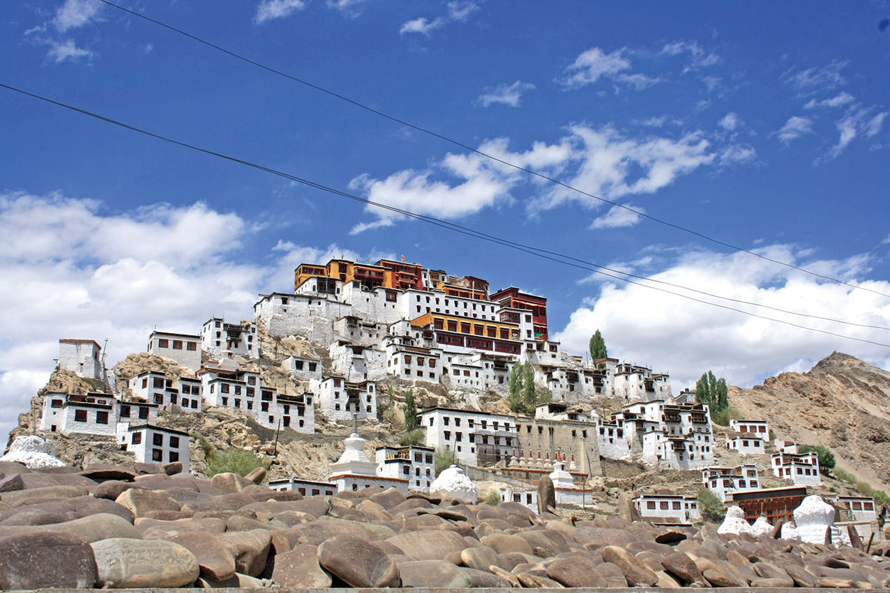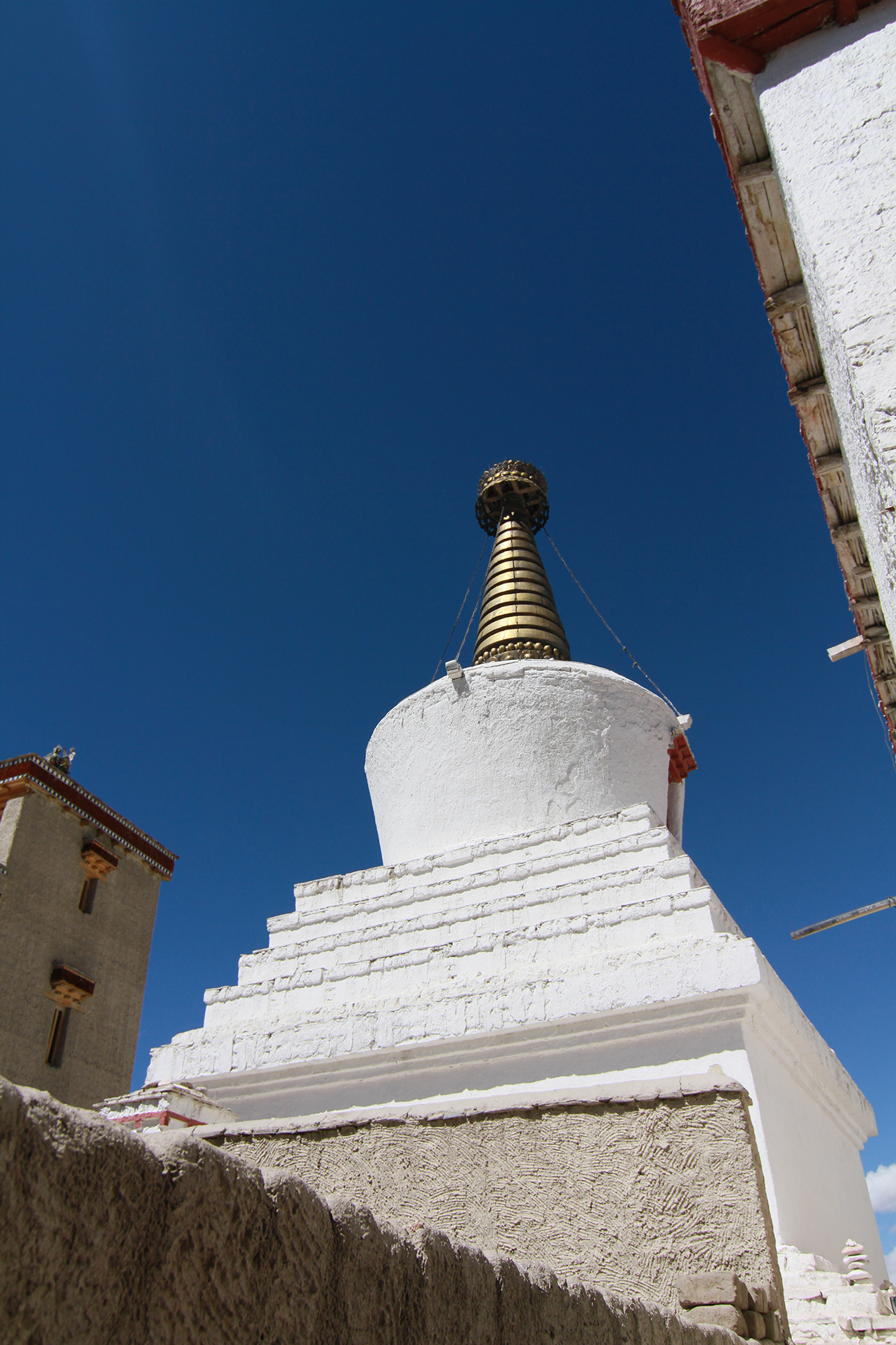 在拉达克,几乎每一样在地面上存在的实物都有自己一个专属位置,那是因为拉达克这里原就是一片大空旷,因此样样物物皆有其位;山谷里是一片微微呼吸的人世,山上是盘旋静悄的一条山道。除此之外,每一处建筑,凭空矗立,而且都有自己四周围延绵无尽的空间。就如那天跋涉到Thiksey修道院去,原本漭漭荒荒的四周黄沙,一下子就冒出一座雄踞山上的喇嘛寺院,那个态度,是说:我一直都在这里。