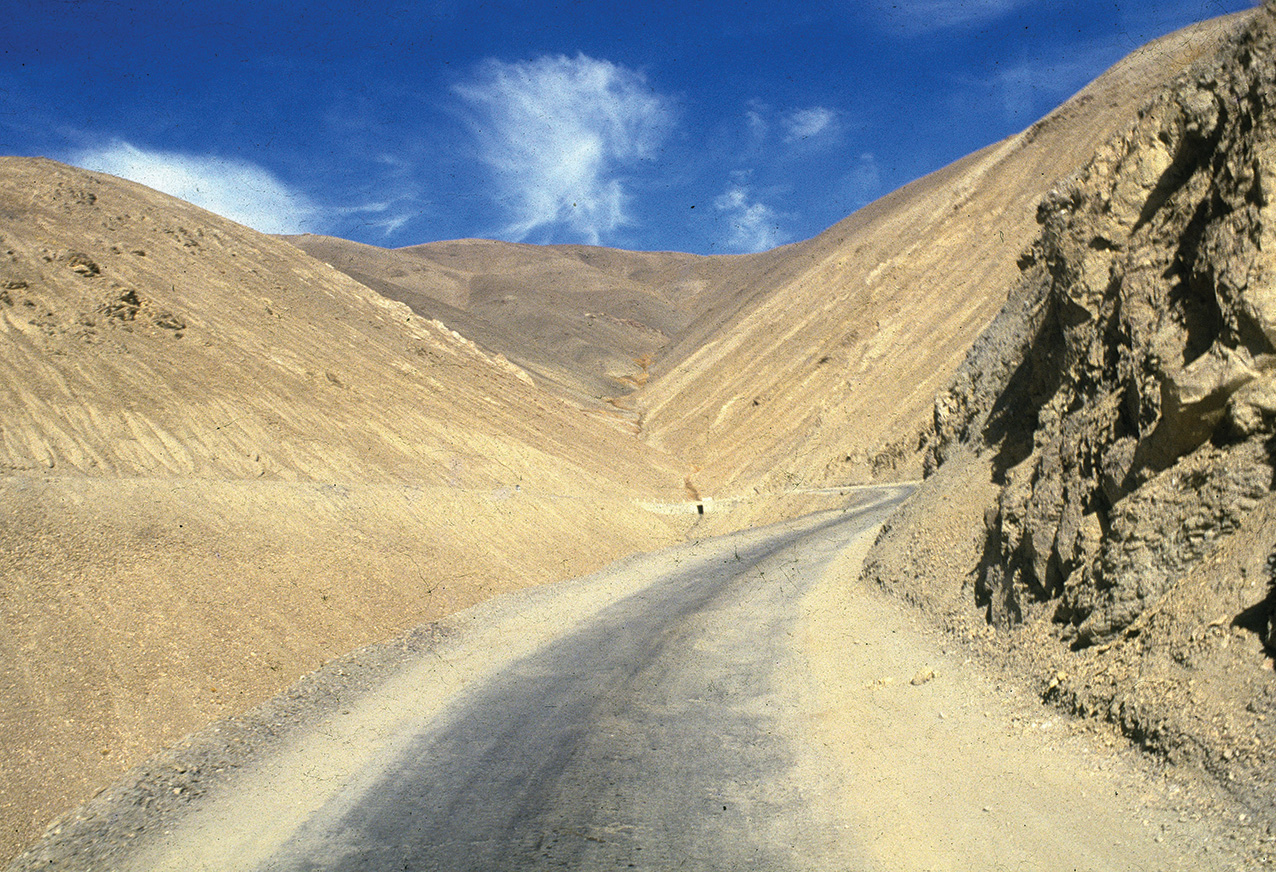 在克什米尔的喀喇昆仑山脉下达尔湖畔,从五月到九月每天城里都有长途巴士开往拉达克。车程20小时,时速20英哩,有时会有轮班的车夫。虽然山路陡峭险恶,但这却是世上一道风景最有启发力的公路:因为沿途风景是垂直变化的。