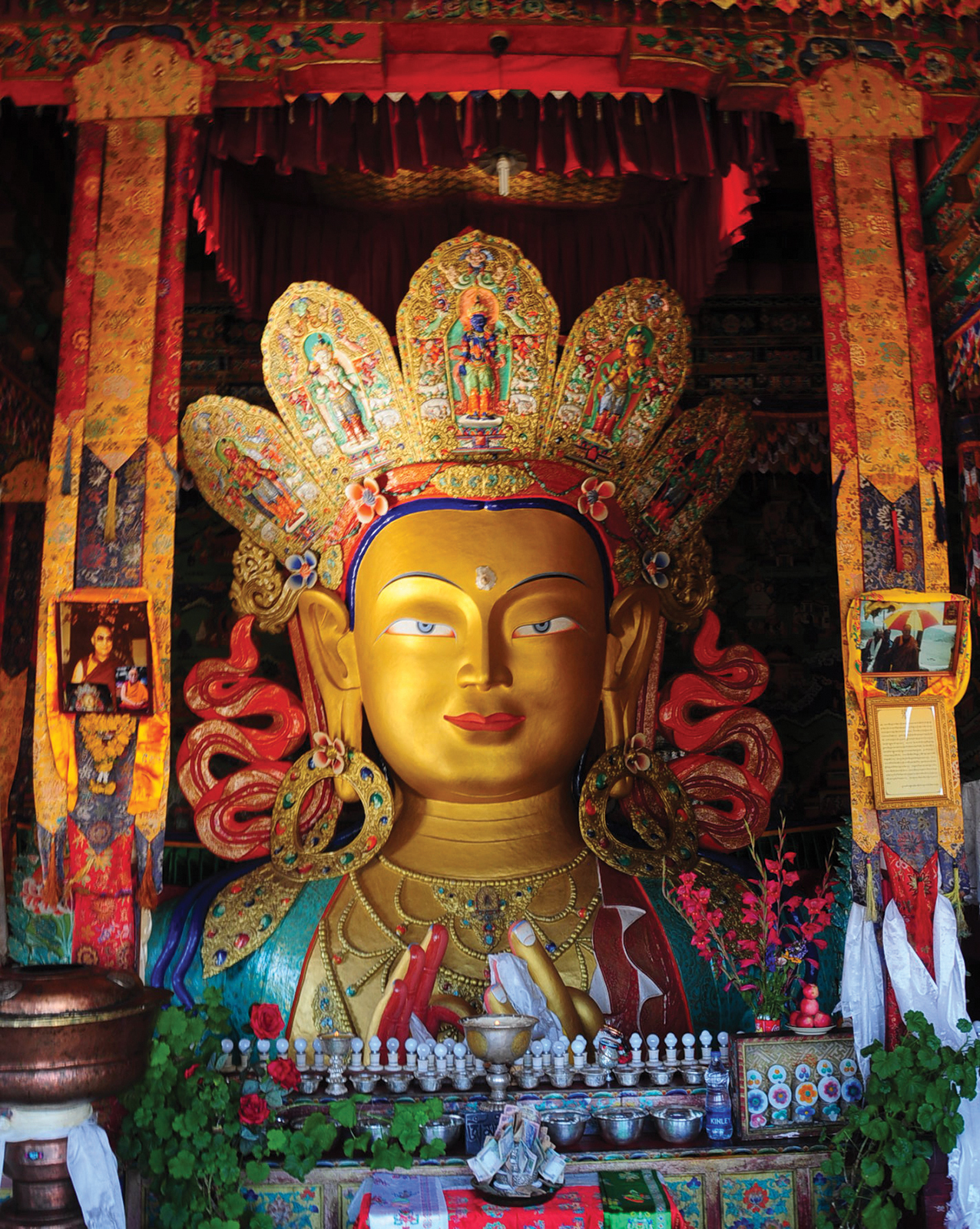 ◆ 提克赛寺寺庙里的15米高的弥勒佛像。