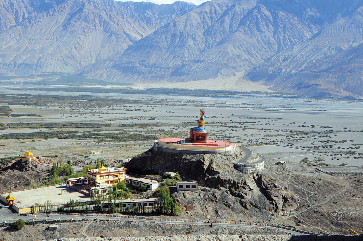 ◆ 努布拉山谷附近Diskit Monastery的广大弥勒佛像。