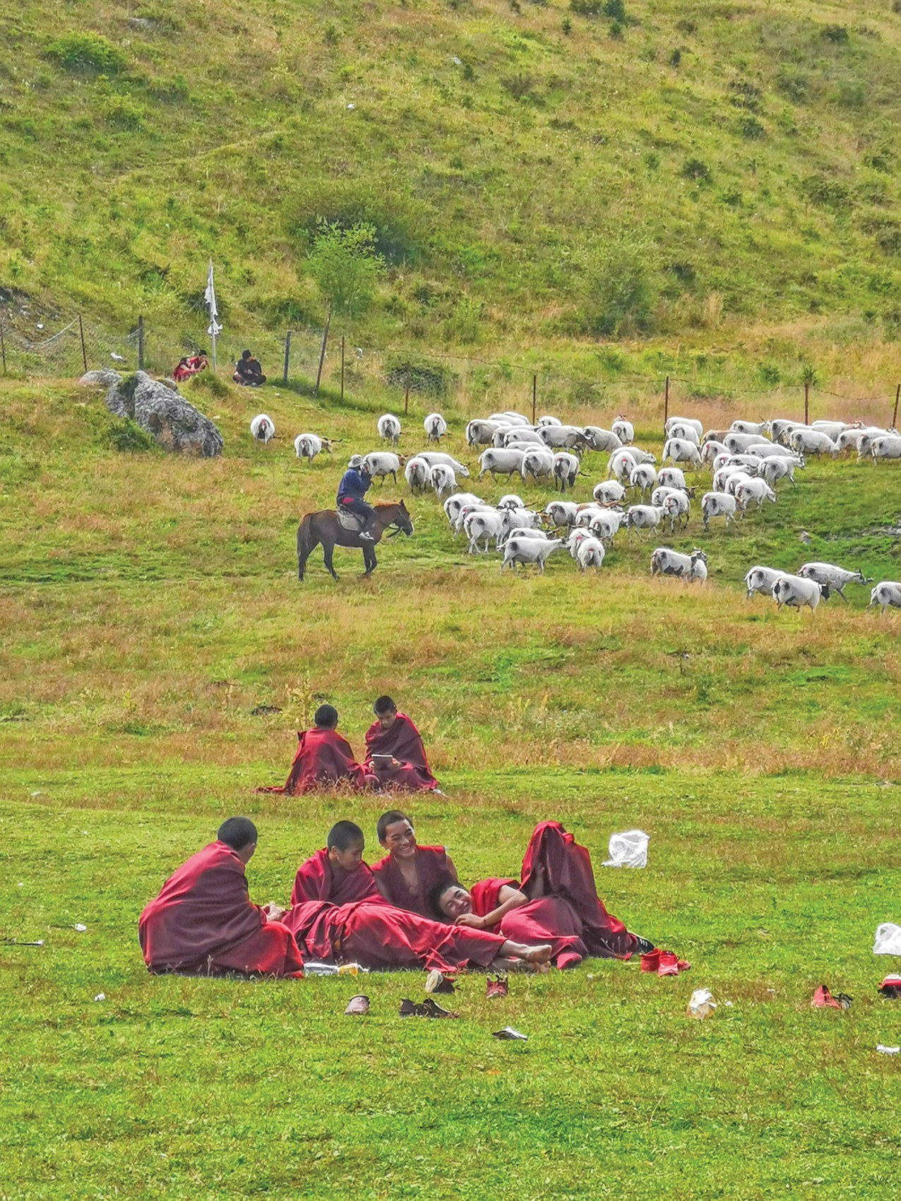 ◆ 喇嘛们在草地上嬉笑,给了白龙江峡谷一副安详的风景。